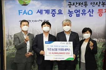 ¡ã³óÇù ±Ý»ê±ºÁöºÎ ¾çȯ¼º ÁöºÎÀå(¿ÞÂÊ µÎ ¹øÂ°)°¡ ¡®¿ì¸® ³ó»ê¹° ²Ù·¯¹Ì¡¯¸¦ Àü´ÞÇÏ°í ¹®Á¤¿ì ±Ý»ê±º¼ö¿Í ±â³ä»çÁøÀ» ÃÔ¿µÇÏ´Â ¸ð½À. ¨Ï±Ý»ê±ºÃ»³óÇù ±Ý»ê±ºÁöºÎ(Áö...