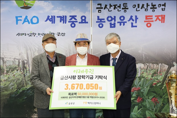 ±Ý»ê±ºÀº (ÁÖ)¸ÆÅ°½ºÄÄÆÛ´Ï(ȸÀå Á¶¿õ·¡)°¡ Áö³ 24ÀÏ ±Ý»ê±ºÃ»À» ¹æ¹®ÇØ (Àç)±Ý»ê±³À°»ç¶ûÀåÇÐÀç´Ü¿¡ ÀåÇÐ±Ý 367¸¸50¿øÀ» ±âŹÇß´Ù°í ¹àÇû´Ù.