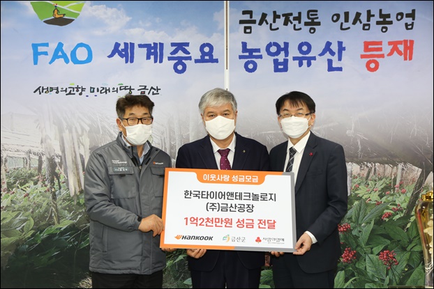 Çѱ¹Å¸ÀÌ¾î¾ØÅ×Å©³î·ÎÁö(ÁÖ) ±Ý»ê°øÀåÀº À̳¯ ¹®Á¤¿ì ±Ý»ê±º¼ö¸¦ ºñ·ÔÇØ Ȳ¼ºÇÐ Çѱ¹Å¸ÀÌ¾î¾ØÅ×Å©³î·ÎÁö ±Ý»ê°øÀåÀå, Á¤È¸¿µ Ãæ³²»çȸº¹Áö°øµ¿¸ð±Ýȸ »ç¹«Ã³ÀåÀÌ Âü¼®ÇÑ °¡¿îµ¥ 1¾ï2000¸¸ ¿øÀÇ ¼º±ÝÀ» ±âŹÇß´Ù.