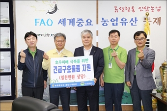 ³óÇùÁß¾Óȸ Ãæ³²º»ºÎ(º»ºÎÀå ±æÁ¤¼·)°¡ Áö³­ 12ÀÏ ±Ý»ê±ºÃ»À» ¹æ¹®ÇØ ¼öÇØÇÇÇØ ÀÌÀç¹ÎÀ» À§ÇØ 1000¸¸ ¿ø »ó´çÀÇ ±¸È£¹°Ç° 100¼¼Æ®¸¦ ±âŹÇß´Ù.¶ÇÇÑ À̹ø ¼ö...
