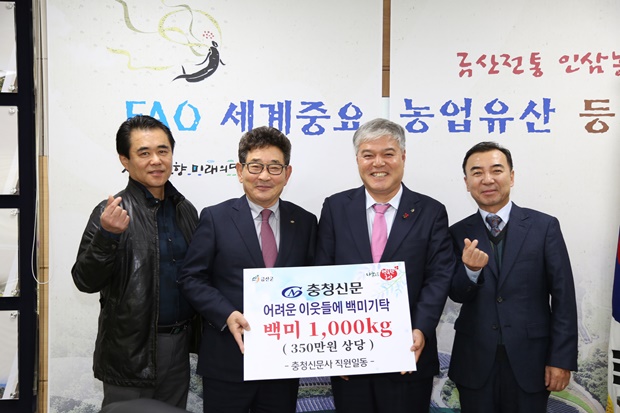 ±Ý»ê±ºÀº ÃæÃ»½Å¹®(»çÀå ±èÃæÇå)ÀÌ Áö³­ 19ÀÏ ±Ý»ê±ºÀ» ¹æ¹®ÇØ ¾î·Á¿î ÀÌ¿ô¿¡°Ô Àü´ÞÇØ ´Þ¶ó¸ç 350¸¸ ¿ø »ó´çÀÇ ¹é¹Ì 1000kgÀ» ±âŹÇß´Ù°í ¹àÇû´Ù.
