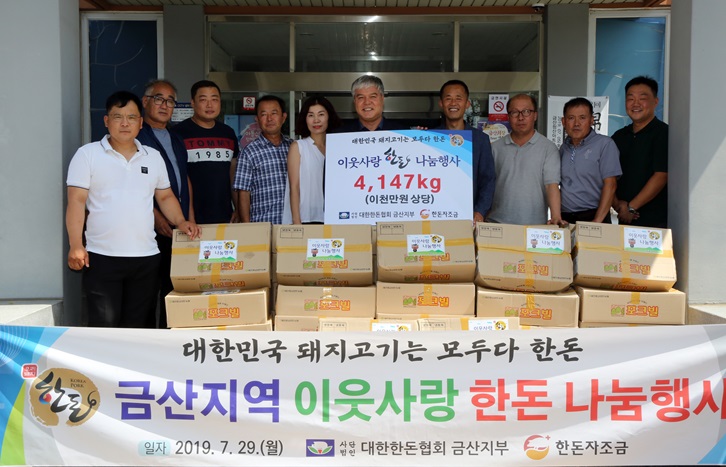 ´ëÇÑÇѵ·Çùȸ ±Ý»êÁöºÎ(ÁöºÎÀå ±èÀÀº¸)´Â ¹«´õÀ§¿¡ ÁöÄ£ ¼Ò¿Ü°èÃþÀ» À§ÇØ 29ÀÏ ±Ý»ê±ºÃ»À» ¹æ¹®ÇØ µÅÁö°í±â 4147kg(2000¸¸¿ø »ó´ç)À» ±âŹÇß´Ù°í ¹àÇû´Ù.