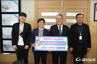 ±Ý»ê±º °ø¹«¿ø Á÷ÀåÇùÀÇȸ(ȸÀå Á¤Áø±¸)´Â Áö³­ 27ÀÏ ±Ý»ê±ºÃ»¿¡¼­ Áö¿ªÀÇ ¼Ò¿ÜµÇ°í ¾î·Á¿î ÀÌ¿ôÀ» À§ÇØ ½á´Þ¶ó¸ç 300¸¸¿øÀÇ ¼º±ÝÀ» ±âŹÇß´Ù.±Ý»ê±º °ø¹«¿øÁ÷Àå...