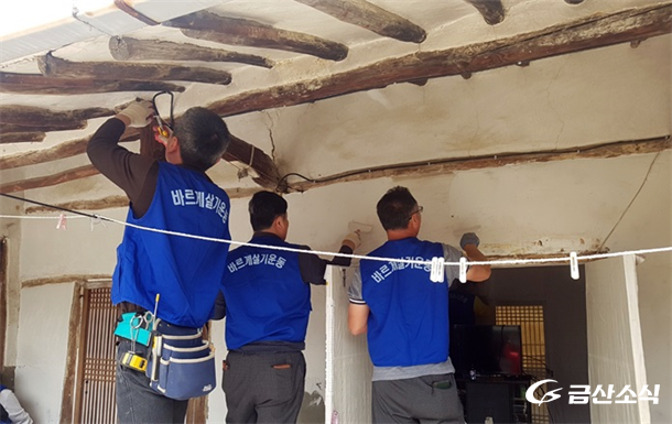 ´ëºØºÀ»çȸ(ȸÀå, À̱Կø)°¡ 15ÀÏ ±Ý»ê±º ºÎ¸®¸é Çö³»¸® A¸ð ÇÒ¸Ó´Ï ÁýÀÇ µµ¹è, Àü±â, ´Ï½º Ä¥, ȸº®¹Ù¸£±â µîÀÇ µÎ ¹øÂ° ºÀ»çȰµ¿À» ÆîÃÄ º¹Áö»ç°¢Áö´ëÀÇ ¾î·Á¿î ÀÌ¿ô¿¡°Ô µû¶æÇÑ ¼Õ±æÀ» ÆîÄ¡°í ÀÖ´Ù´Â Æò°¡¸¦ ¹Þ°í ÀÖ´Ù.