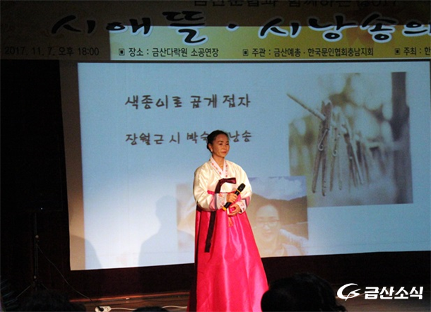 Áö³­7ÀÏ ¿ÀÈÄ6½Ã ±Ý»ê´Ù¶ô¿ø ¼Ò°ø¿¬Àå¿¡¼­ ½Ã³¶¼Û °­ÀǸ¦ ¸Ã°í ÀÖ´Â ½ÅÀº°â °­»çÀÇ »çȸ·Î ±Ý»ê¹®ÀÎÇùȸ¿Í ÇÔ²²ÇÏ´Â 2017 ½Ã¾Ö¶ã¡¤½Ã³¶¼Ûȸ¸¦ °³ÃÖÇß´Ù