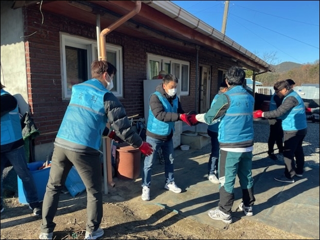 Çѱ¹Å¸ÀÌ¾î ±Ý»ê°øÀå ºÀ»ç´Üü ³ª´®È¸(ȸÀå ±èÁ¾¼ø)°¡ Áö³­ 5ÀÏ ¾î·Á¿î ÀÌ¿ôÀÇ °Ü¿ï³ª±â¸¦ Áö¿øÇϱâ À§ÇØ ±Ý»ê±º Á¦¿ø¸é¿¡¼­ »ç¶ûÀÇ ¿¬Åº³ª´® ºÀ»çȰµ¿À» ÆîÃÆ´Ù.
