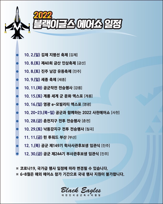 ±ºÀº ¿À´Â 9¿ù 30ÀϺÎÅÍ 11Àϰ£ÀÇ ÀλïÃàÁ¦ ÀÏÁ¤ Áß 10¿ù8ÀÏ¿¡ ¿¡¾î¼î¸¦ °ø°³ÇÒ ¿¹Á¤ÀÌ´Ù.