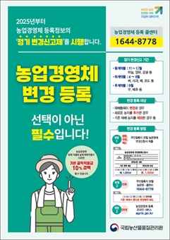 ³ó¾÷°æ¿µÃ¼ µî·ÏÁ¤º¸ ¹Ù²î¸é ¡®²À¡¯ º¯°æ ½Å°íÇϼ¼¿ä! ³ó°ü¿ø ±Ý»ê»ç¹«¼Ò, ¡®ÇϰèÀÛ¹° Á¤±â º¯°æ ½Å°íÁ¦¡¯ º»°Ý ¿î¿µ