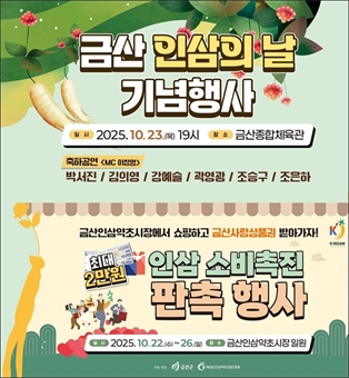±Ý»ê±ºÀº ¿À´Â 10¿ù 23ÀÏ ¡®±Ý»ê ÀλïÀÇ ³¯¡¯À» ±â³äÇϰí Àλ¾àÃÊ ¼Òºñ Ȱ¼ºÈ­¸¦ À§ÇØ ±â³äÇà»ç ¹× ÀÎ»ï ¼ÒºñÃËÁø ÆÇÃËÇà»ç¸¦ °³ÃÖÇÑ´Ù.±º... [±Ý»ê´º½º] ±èÁ¾º¹ ±âÀÚ