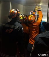 ±Ý»ê¼Ò¹æ¼­, ¿¤¸®º£ÀÌÅÍ¿¡ °¤Èù ½Ã¹Î 1¸í ±¸Á¶ 1Ãþ°ú 2Ãþ »çÀÌ ¸ØÃç, ½Â°­±â ¸¶½ºÅÍŰ ÀÌ¿ë
